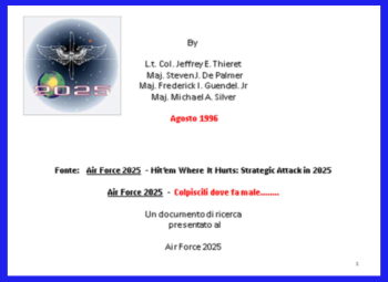Doc. 2 “......le operazioni di attacco strategico 2025 percorrono tutta la gamma, dagli scontri tradizionali, altamente distruttivi reparto contro reparto, ad una guerra molto meno invasiva, ma molto efficace, basata sui computer e sulle nanotecnologie”.