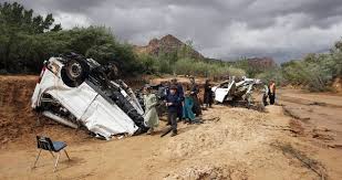 al confine con l'Arizona,negli Stati Uniti Tra i dispersi, diverse donne e alcuni bambini che tornavano da un parco a bordo di un pulmino travolto dalla furia delle acque.